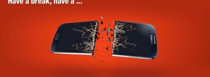 Özel olarak hazırlanmış bir görselde, ünlü KitKat çikolatalarının reklamına gönderme yaparak, ikiye ayrılmış bir Samsung telefon görüntüsünün üzerine “biraz mola verin” denilerek, Android ve Samsung telefonlara bir mola verip Nokia ve Windows sistemine bir şans verilmesi vurgusu yapıldı. Bilindiği gibi Google, yeni Android sürümünün kod adı olarak KitKat’ı seçmişti.