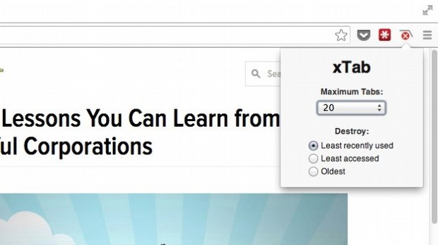 XTab isimli Chrome eklentisi ise, kullanıcının belirlediği sayıdan fazla sekmenin açılmasına izin vermiyor ve eğer yeni bir sekme açılacaksa, açık sekmelerden en eskisini kapatarak bellekte yer açıyor.